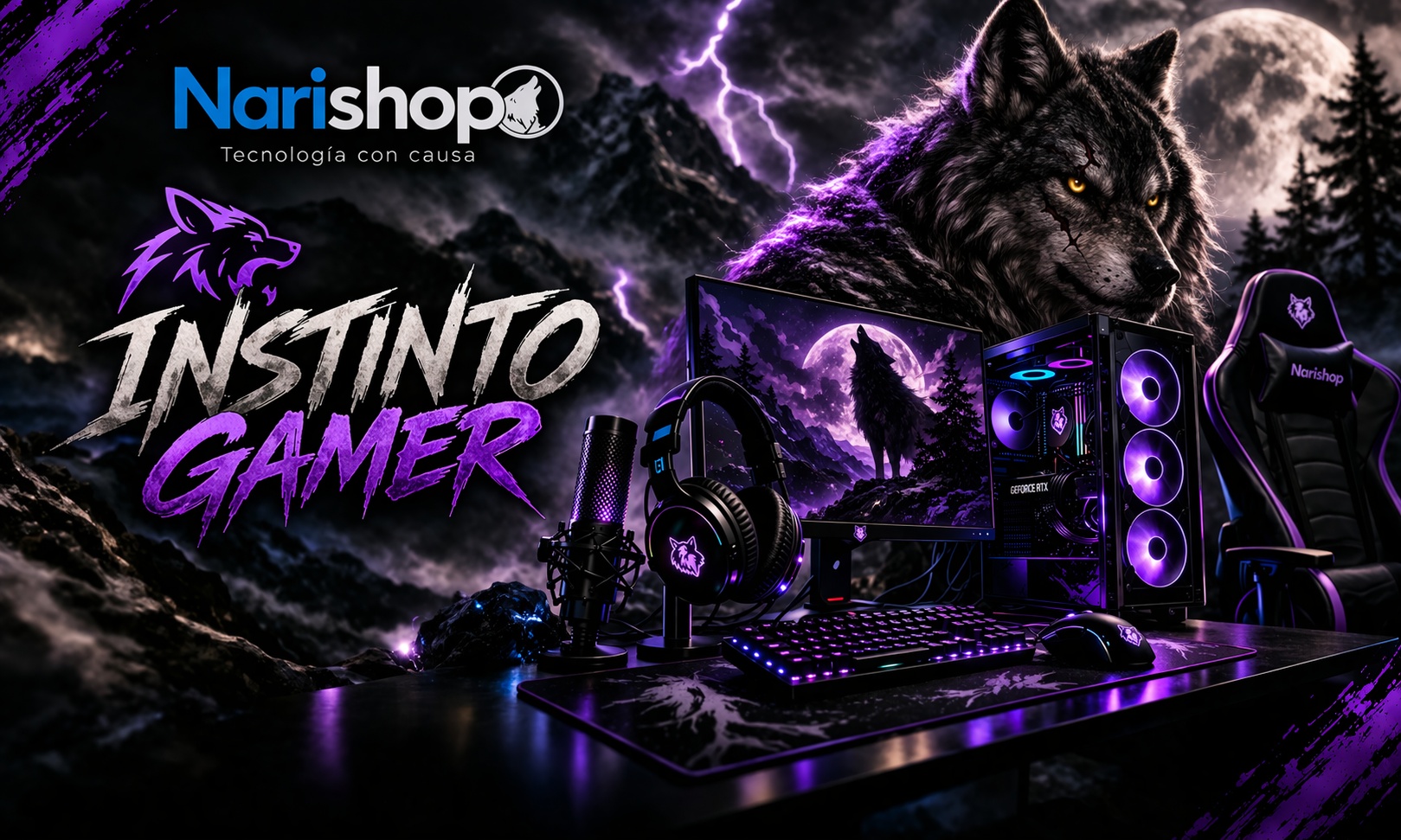Instinto Gamer reúne una selección de productos pensados para ayudarte a crear un setup con personalidad, rendimiento y estilo. Aquí encontrarás artículos elegidos para que armes un espacio que refleje tu esencia gamer y despierte tu instinto en cada partida. Además, en Narishop cuentas con asesoría de especialistas que pueden ayudarte a elegir los productos más adecuados para tu setup, de acuerdo con lo que buscas y tu presupuesto. Y recuerda que al comprar con nosotros no solo equipas tu territorio: también apoyas la protección de especies endémicas de México, como el lobo gris mexicano, que inspira esta sección y forma parte del espíritu de nuestra tienda.